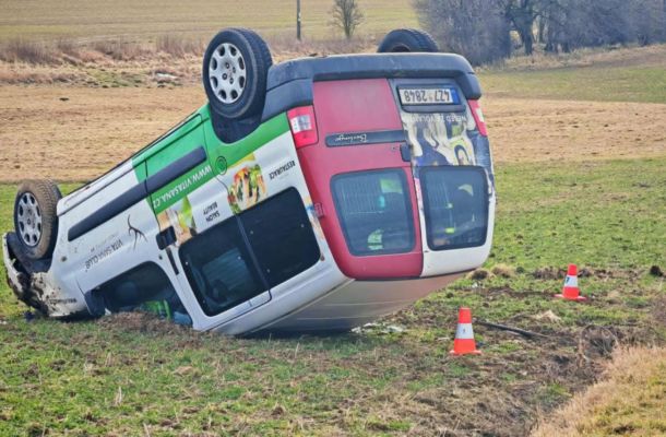 Přemet a tvrdé přistání v poli. Řidič menšího nákladního vozu nešťastně havaroval u Bratříkovic. Fo…